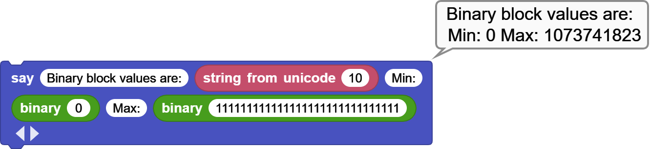 Actual computer representation of an signed integer in MicroBlocks is 31 bits long. The high order bit #31 is a sign bit. This allows numbers in the range of -1073741824 to 1073741823.